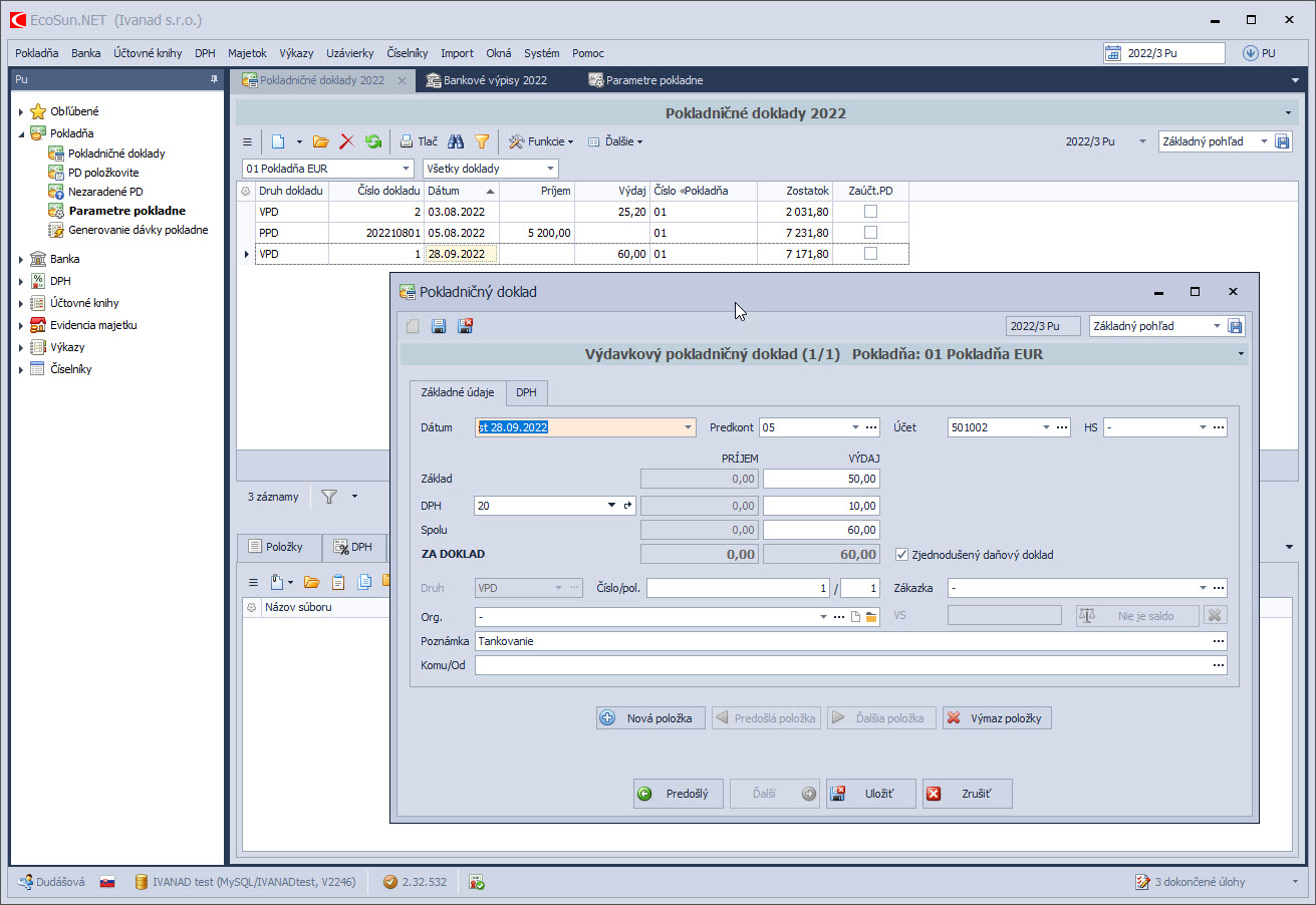 Prehľad peňažných tokov v ekonomickom programe EcoSun do pár sekúnd. Výkaz vám poskytne prehľad o pohybe finančných prostriedkov vo vašej firme.