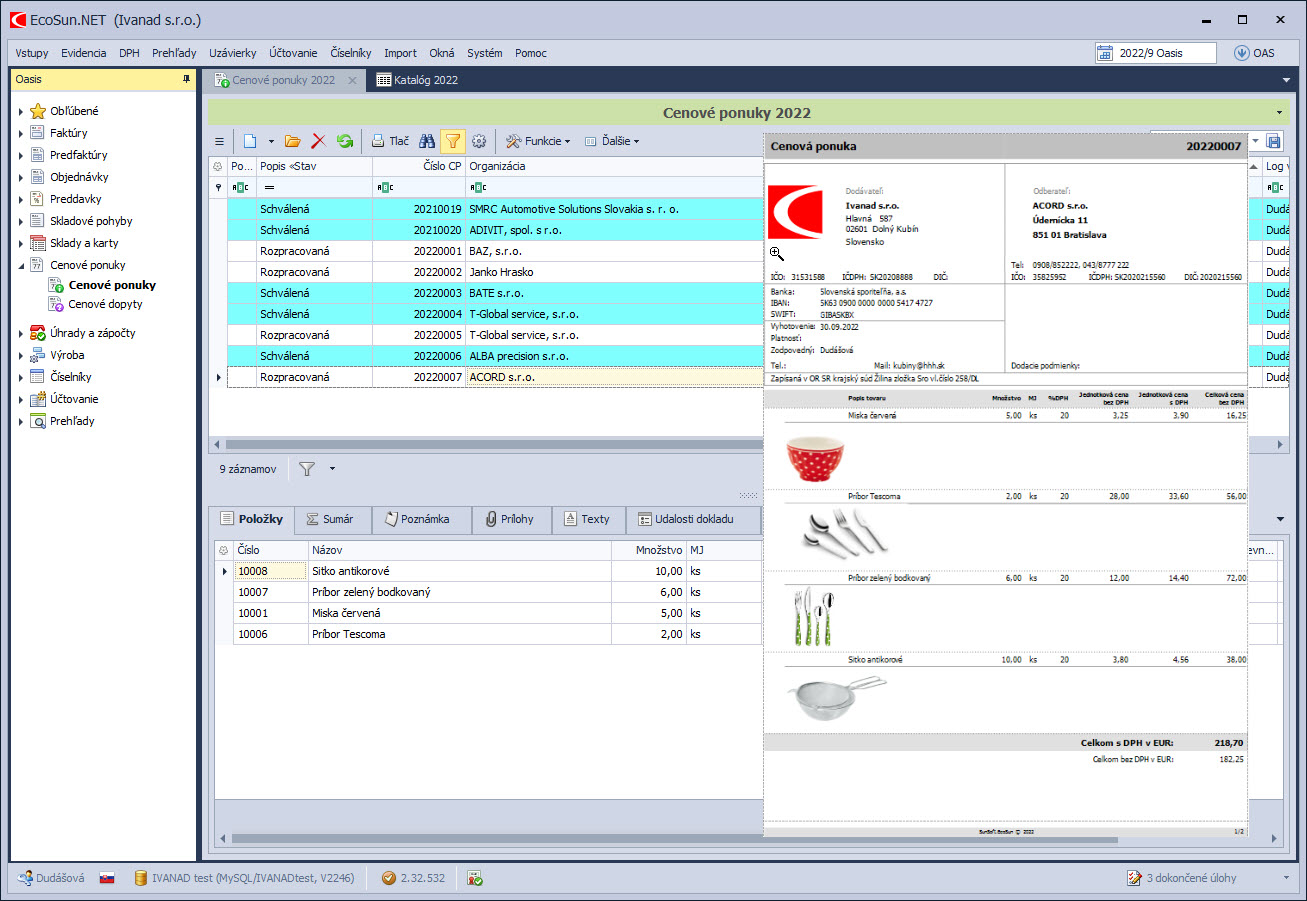Prepracovaný systém predaja od cenových ponúk cez objednávky a sklad až po faktúry.