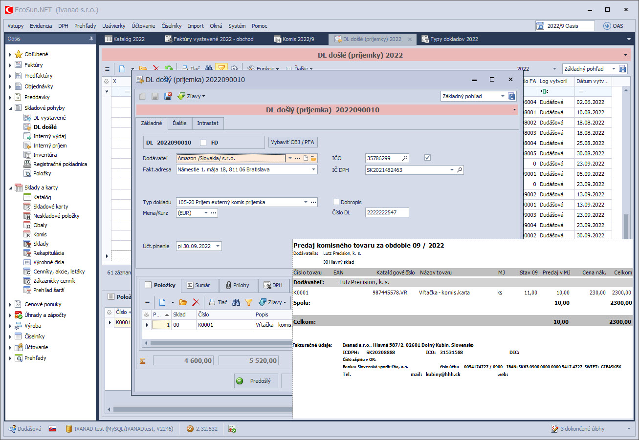 Agenda je určená pre firmy, ktoré majú tovar od dodávateľa na komis. Komisný sortiment je oddelený od vášho hlavného skladu, vďaka čomu máte rýchly prehľad, čo ste predali z vlastných a čo z komisných zásob. Samozrejme je tomuto režimu prispôsobené aj účtovanie.