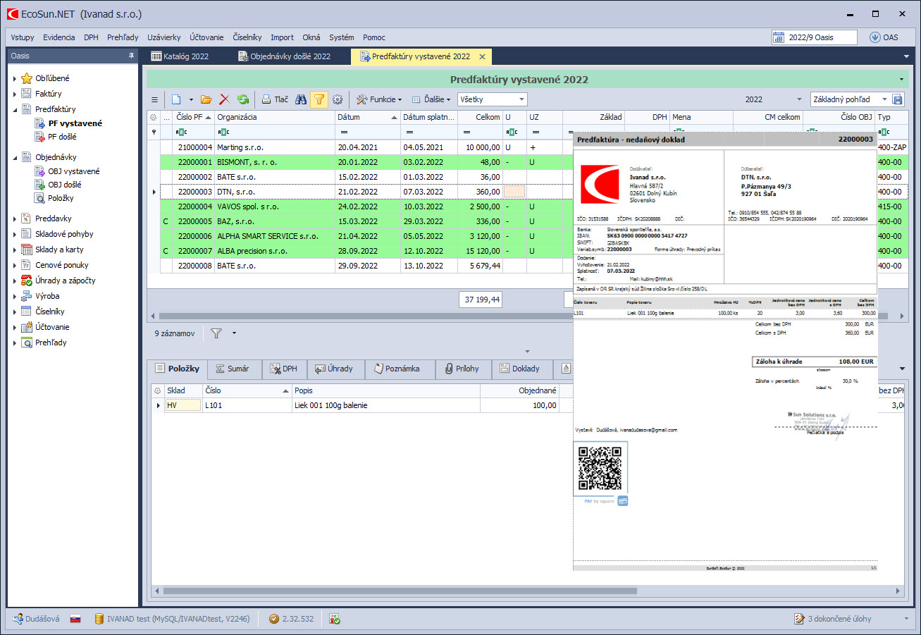 V dnešnej dobe je často potrebné, aby odberateľ zaplatil zálohu alebo celú objednávku. Agenda zálohových a preddavkových faktúr zabezpečí komfortné spracovanie záloh z hľadiska pohľadávok, DPH a vysporiadania preddavkov.