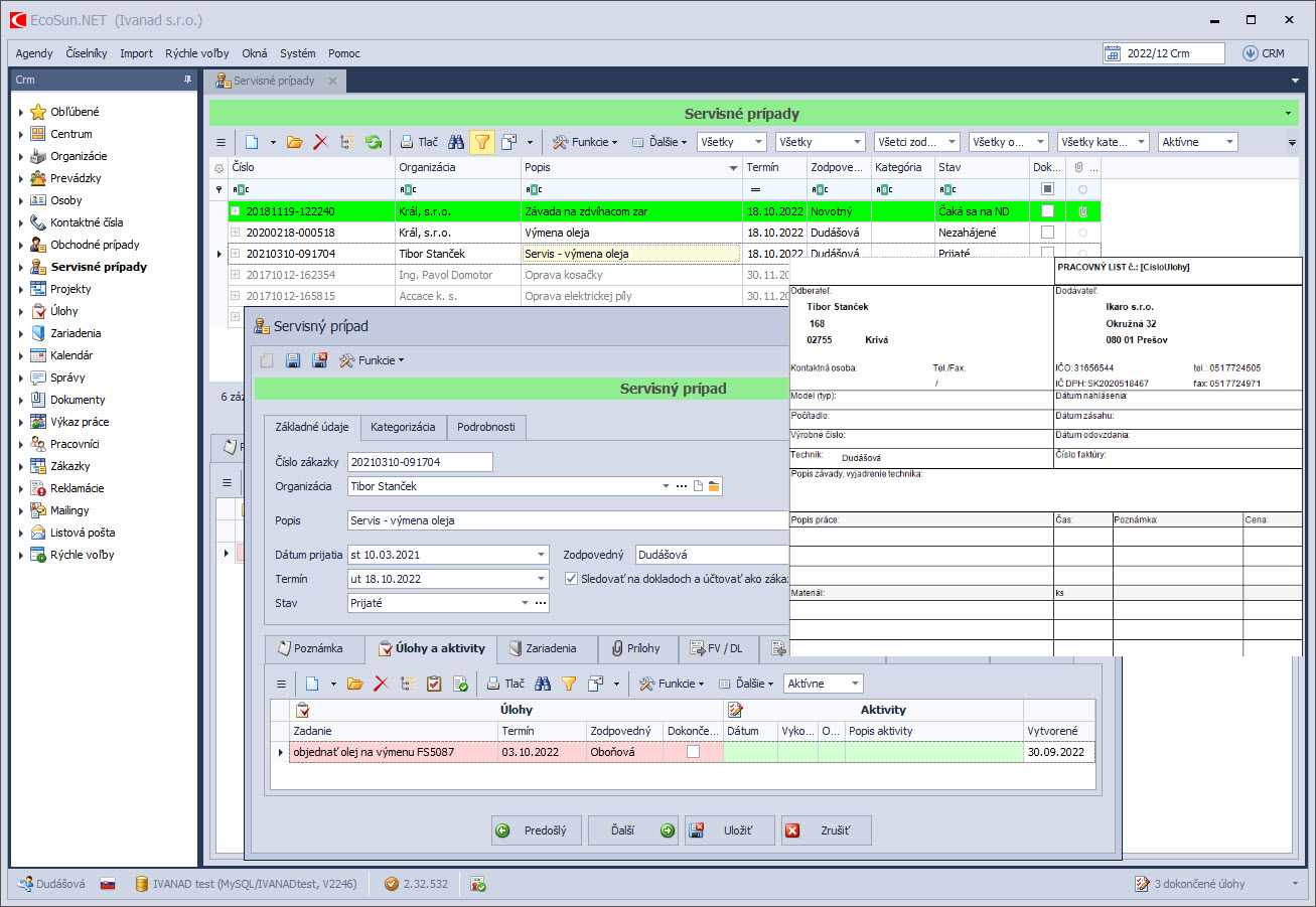 Firmy, ktoré sa zaoberajú servisnou činnosťou určite využijú túto agendu. K servisnej zákazke pohodlne vytvoríte výdajky materiálu a vystavíte faktúru. Ak potrebujete riadiť pracovníkov servisu, zadáte im k úlohy a kontrolujete ich plnenie. K servisnej zákazke ľahko skontrolujete vystavené doklady a odvedenú prácu.