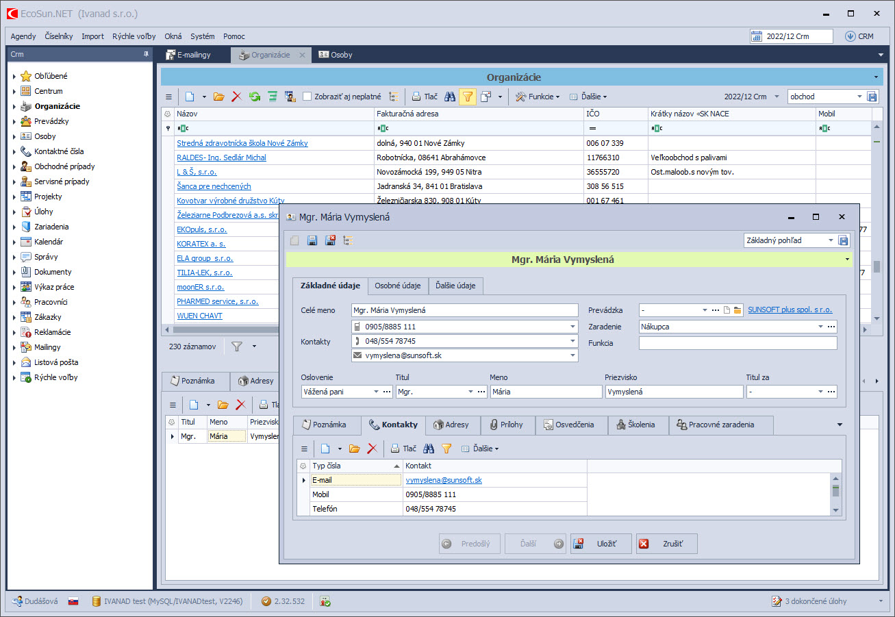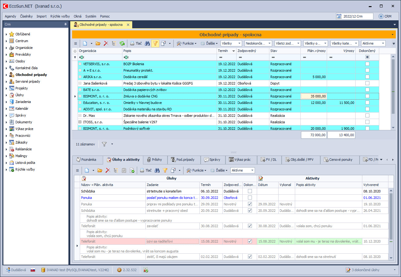 Prehľadná evidencia zákazníkov, obchodných prípadov a aktivít.