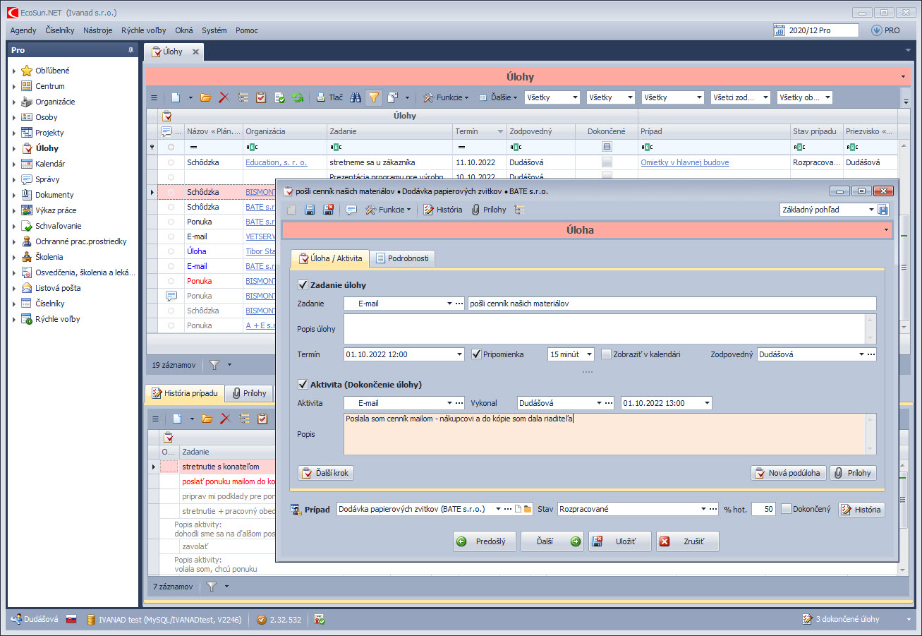 Tento CRM program pomáha riadiť vašich obchodníkov efektívne a dôsledne. Zadávanie úloh, kontrola termínov a sledovanie plnenia sa stane hračkou. Rýchly prehľad o stave úloh poskytujú e-mailové notifikácie.